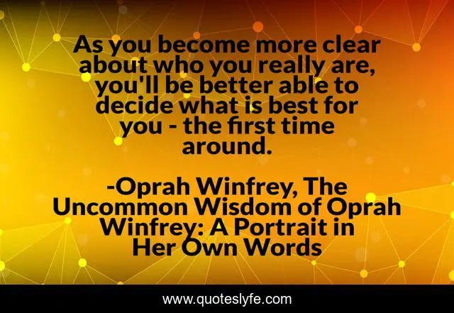 This page presents the quote "As you become more clear about who you really are, you'll be better able to decide what is best for you - the first time around.". Author of this quote is Oprah Winfrey, The Uncommon Wisdom of Oprah Winfrey: A Portrait in Her Own Words. .