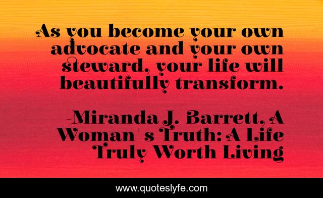 "Miranda J. Barrett, A Woman's Truth: A Life Truly Worth Living Quotes." Quoteslyfe.com, 2025. Fri. 05 Dec. 2025. <https://www.quoteslyfe.com/quote/As-you-become-your-own-advocate-and-222875>.