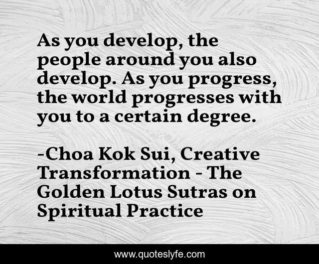 This page presents the quote "As you develop, the people around you also develop. As you progress, the world progresses with you to a certain degree.". Author of this quote is Choa Kok Sui, Creative Transformation - The Golden Lotus Sutras on Spiritual Practice. This quote is about evolution, growth, spiritual-development,.
