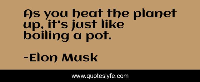 This page presents the quote "As you heat the planet up, it's just like boiling a pot.". Author of this quote is Elon Musk. This quote is about heat, up,.