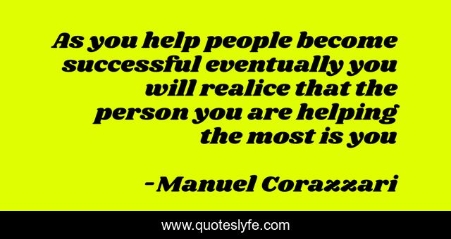 This page presents the quote "As you help people become successful eventually you will realice that the person you are helping the most is you". Author of this quote is Manuel Corazzari. This quote is about caring-for-others, help, success,.
