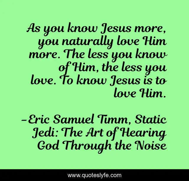 "Eric Samuel Timm, Static Jedi: The Art of Hearing God Through the Noise Quotes." Quoteslyfe.com, 2025. Mon. 08 Dec. 2025. <https://www.quoteslyfe.com/quote/As-you-know-Jesus-more-you-naturally-120716>.