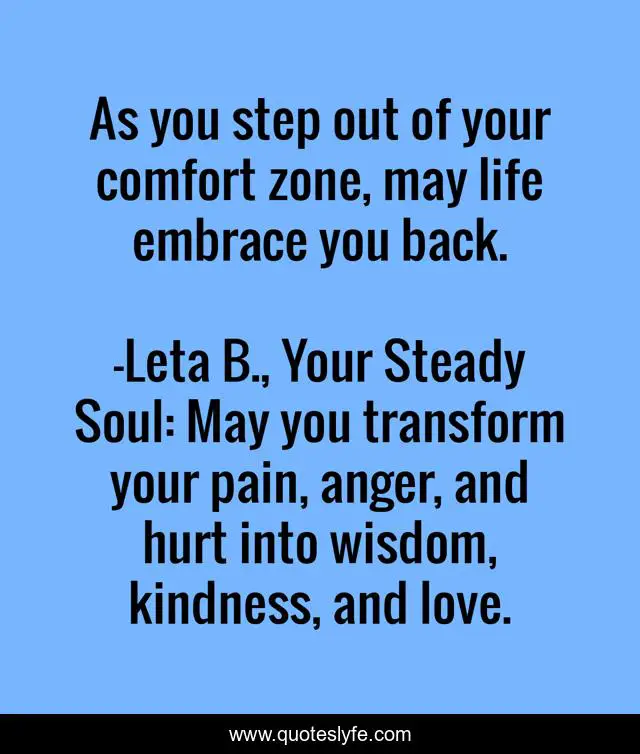 "Leta B., Your Steady Soul: May you transform your pain, anger, and hurt into wisdom, kindness, and love. Quotes." Quoteslyfe.com, 2025. Mon. 08 Dec. 2025. <https://www.quoteslyfe.com/quote/As-you-step-out-of-your-comfort-130483>.