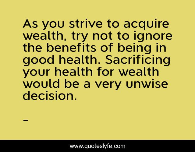 This page presents the quote "As you strive to acquire wealth, try not to ignore the benefits of being in good health. Sacrificing your health for wealth would be a very unwise decision.". Author of this quote is . .
