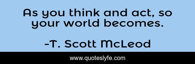 This page presents the quote "As you think and act, so your world becomes.". Author of this quote is T. Scott McLeod. This quote is about dedication, secret-to-success, success, persistence,.