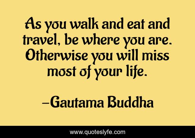This page presents the quote "As you walk and eat and travel, be where you are. Otherwise you will miss most of your life.". Author of this quote is Gautama Buddha. This quote is about living, living-life,.