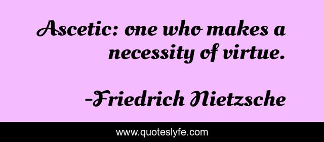 This page presents the quote "Ascetic: one who makes a necessity of virtue.". Author of this quote is Friedrich Nietzsche. .
