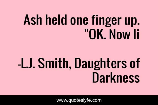 This page presents the quote "Ash held one finger up. "OK. Now li". Author of this quote is L.J. Smith, Daughters of Darkness. This quote is about daughters-of-darkness, ash, mary-lynnette, soulmates,.