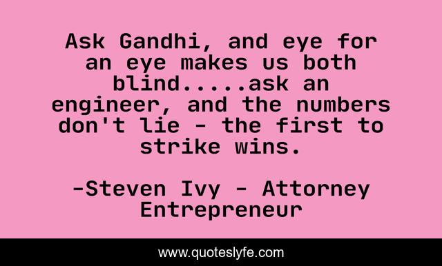 "Steven Ivy - Attorney Entrepreneur Quotes." Quoteslyfe.com, 2025. Sat. 06 Dec. 2025. <https://www.quoteslyfe.com/quote/Ask-Gandhi-and-eye-for-an-eye-250416>.