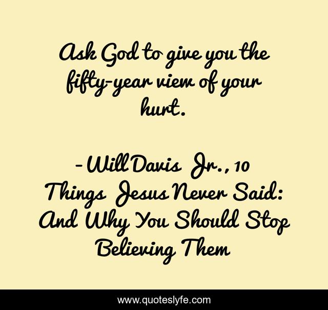 This page presents the quote "Ask God to give you the fifty-year view of your hurt.". Author of this quote is Will Davis Jr., 10 Things Jesus Never Said: And Why You Should Stop Believing Them. This quote is about prospective, forgiveness, bitterness,.