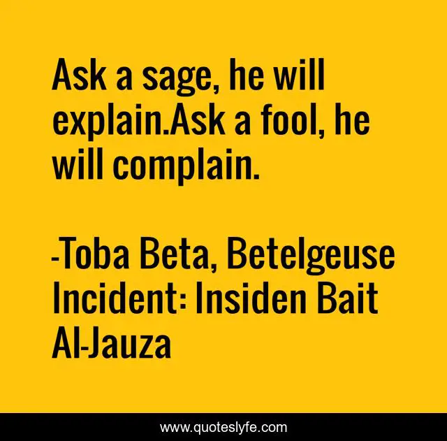 "Toba Beta, Betelgeuse Incident: Insiden Bait Al-Jauza Quotes." Quoteslyfe.com, 2025. Sat. 06 Dec. 2025. <https://www.quoteslyfe.com/quote/Ask-a-sage-he-will-explain-Ask-209968>.