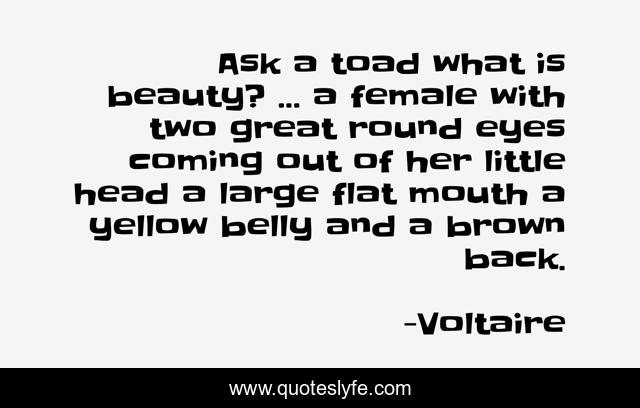 "Voltaire Quotes." Quoteslyfe.com, 2025. Sat. 06 Dec. 2025. <https://www.quoteslyfe.com/quote/Ask-a-toad-what-is-beauty-a-260579>.