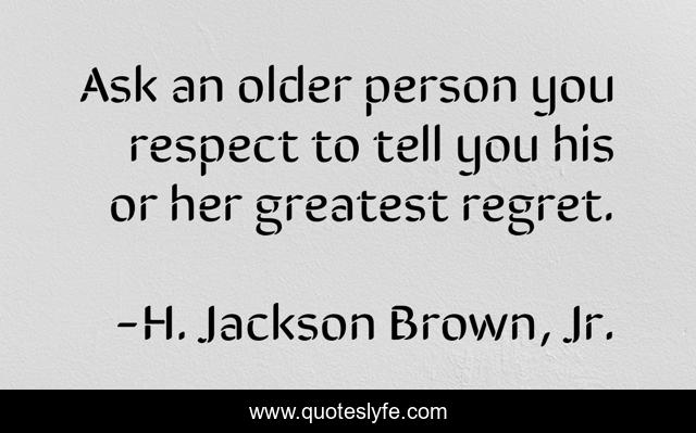 This page presents the quote "Ask an older person you respect to tell you his or her greatest regret.". Author of this quote is H. Jackson Brown, Jr.. This quote is about regret, greatest,.