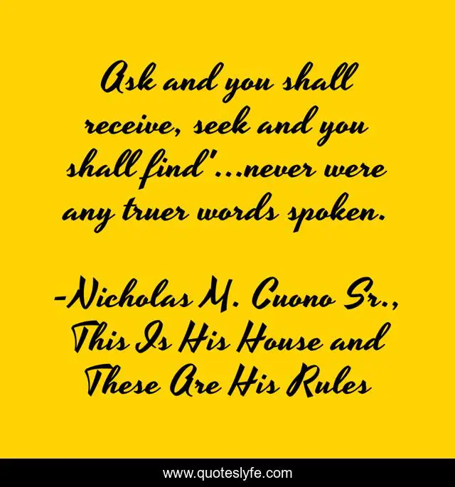 "Nicholas M. Cuono Sr., This Is His House and These Are His Rules Quotes." Quoteslyfe.com, 2025. Sun. 07 Dec. 2025. <https://www.quoteslyfe.com/quote/Ask-and-you-shall-receive-seek-and-28928>.