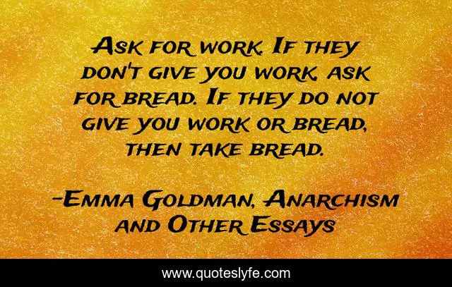 "Emma Goldman, Anarchism and Other Essays Quotes." Quoteslyfe.com, 2025. Fri. 05 Dec. 2025. <https://www.quoteslyfe.com/quote/Ask-for-work-If-they-don-t-206885>.
