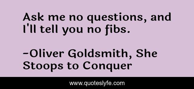 This page presents the quote "Ask me no questions, and I'll tell you no fibs.". Author of this quote is Oliver Goldsmith, She Stoops to Conquer. This quote is about humor, sarcasm, witty, lies, wit, questions, ask,.