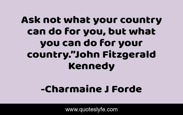 "Charmaine J Forde Quotes." Quoteslyfe.com, 2025. Mon. 08 Dec. 2025. <https://www.quoteslyfe.com/quote/Ask-not-what-your-country-can-do-258331>.