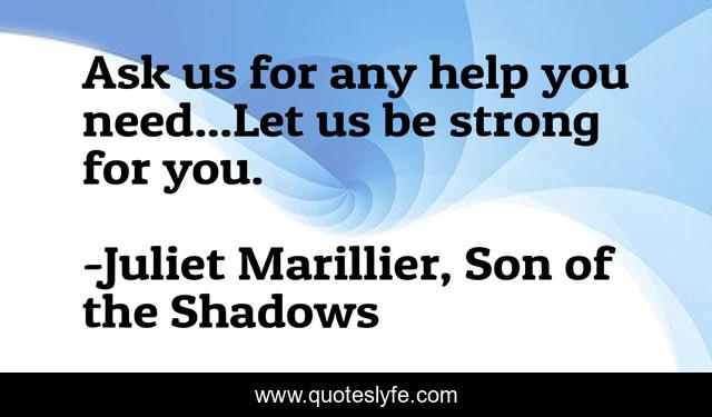 This page presents the quote "Ask us for any help you need...Let us be strong for you.". Author of this quote is Juliet Marillier, Son of the Shadows. This quote is about strength, friendship, help, loyalty,.