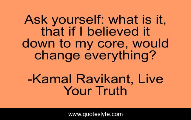 This page presents the quote "Ask yourself: what is it, that if I believed it down to my core, would change everything?". Author of this quote is Kamal Ravikant, Live Your Truth. This quote is about confidence, self-confidence, leadership, self-improvement, truth, change,.