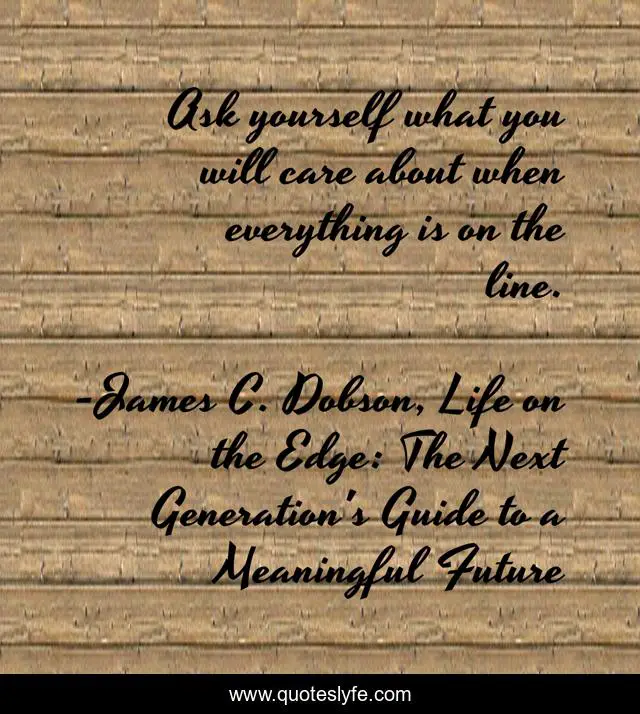 This page presents the quote "Ask yourself what you will care about when everything is on the line.". Author of this quote is James C. Dobson, Life on the Edge: The Next Generation's Guide to a Meaningful Future. This quote is about on, yourself, everything, ask, line, the, care,.