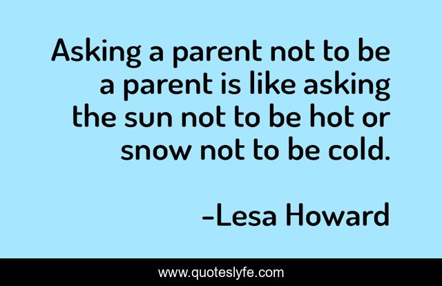 This page presents the quote "Asking a parent not to be a parent is like asking the sun not to be hot or snow not to be cold.". Author of this quote is Lesa Howard. This quote is about parenting, kids, love, children, affection,.