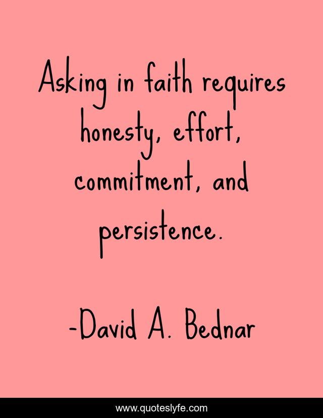 This page presents the quote "Asking in faith requires honesty, effort, commitment, and persistence.". Author of this quote is David A. Bednar. This quote is about honesty, persistence,.