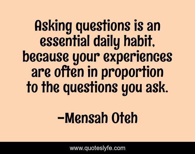 "Mensah Oteh Quotes." Quoteslyfe.com, 2025. Sat. 06 Dec. 2025. <https://www.quoteslyfe.com/quote/Asking-questions-is-an-essential-daily-habit-49033>.