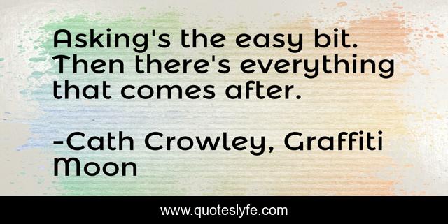 "Cath Crowley, Graffiti Moon Quotes." Quoteslyfe.com, 2025. Fri. 05 Dec. 2025. <https://www.quoteslyfe.com/quote/Asking-s-the-easy-bit-Then-there-91210>.