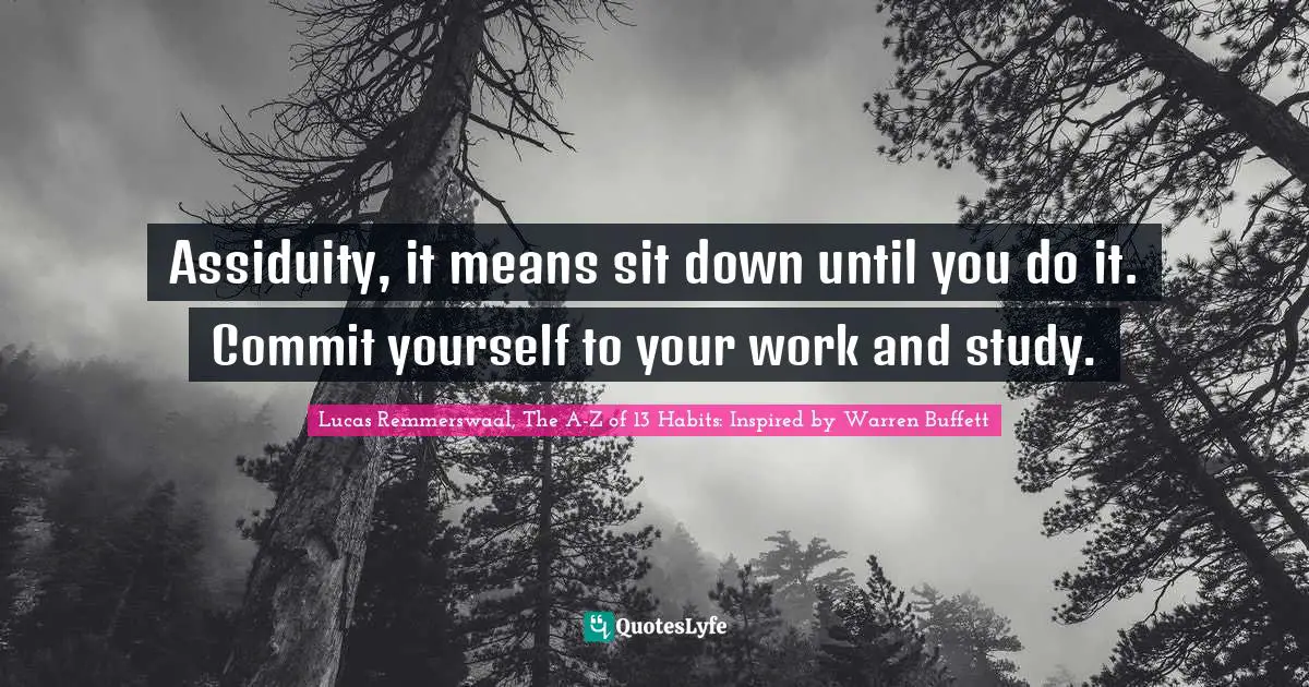 "Lucas Remmerswaal, The A-Z of 13 Habits: Inspired by Warren Buffett Quotes." Quoteslyfe.com, 2025. Thu. 25 Dec. 2025. <https://www.quoteslyfe.com/quote/Assiduity-it-means-sit-down-until-you-71896>.