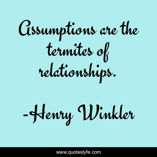 "Henry Winkler Quotes." Quoteslyfe.com, 2025. Sun. 07 Dec. 2025. <https://www.quoteslyfe.com/quote/Assumptions-are-the-termites-of-relationships-34739>.