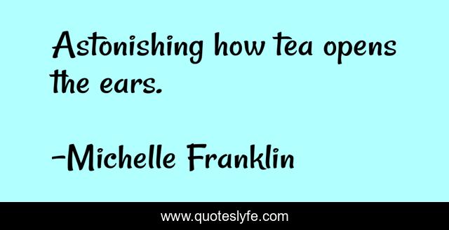"Michelle Franklin Quotes." Quoteslyfe.com, 2025. Mon. 08 Dec. 2025. <https://www.quoteslyfe.com/quote/Astonishing-how-tea-opens-the-ears-281276>.