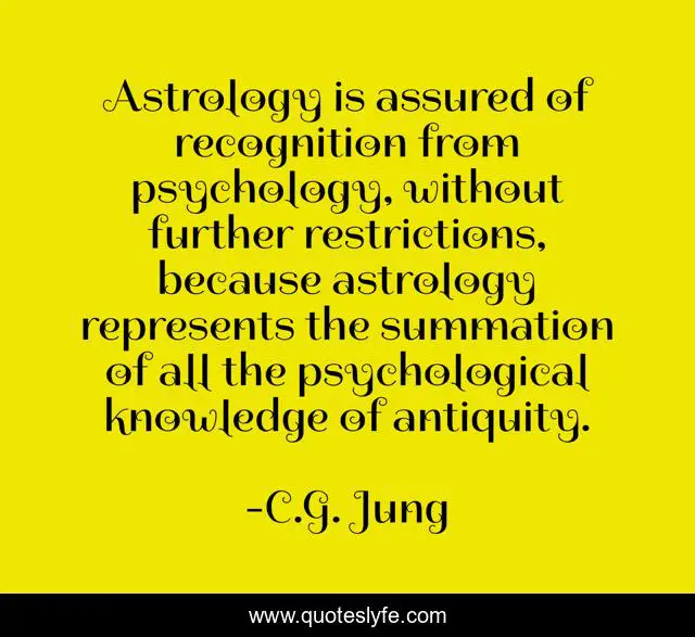 "C.G. Jung Quotes." Quoteslyfe.com, 2025. Fri. 05 Dec. 2025. <https://www.quoteslyfe.com/quote/Astrology-is-assured-of-recognition-from-psychology-30512>.