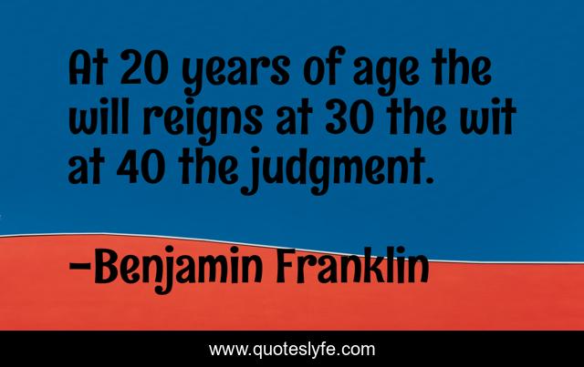 This page presents the quote "At 20 years of age the will reigns at 30 the wit at 40 the judgment.". Author of this quote is Benjamin Franklin. .