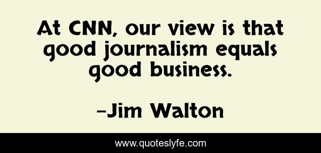 This page presents the quote "At CNN, our view is that good journalism equals good business.". Author of this quote is Jim Walton. This quote is about good, journalism, view,.