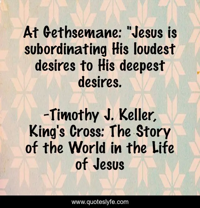 "Timothy J. Keller, King's Cross: The Story of the World in the Life of Jesus Quotes." Quoteslyfe.com, 2025. Fri. 05 Dec. 2025. <https://www.quoteslyfe.com/quote/At-Gethsemane-Jesus-is-subordinating-His-loudest-143747>.