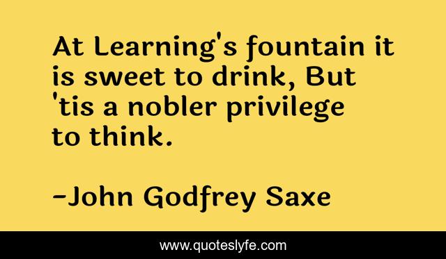 This page presents the quote "At Learning's fountain it is sweet to drink, But 'tis a nobler privilege to think.". Author of this quote is John Godfrey Saxe. This quote is about thinking, learning,.