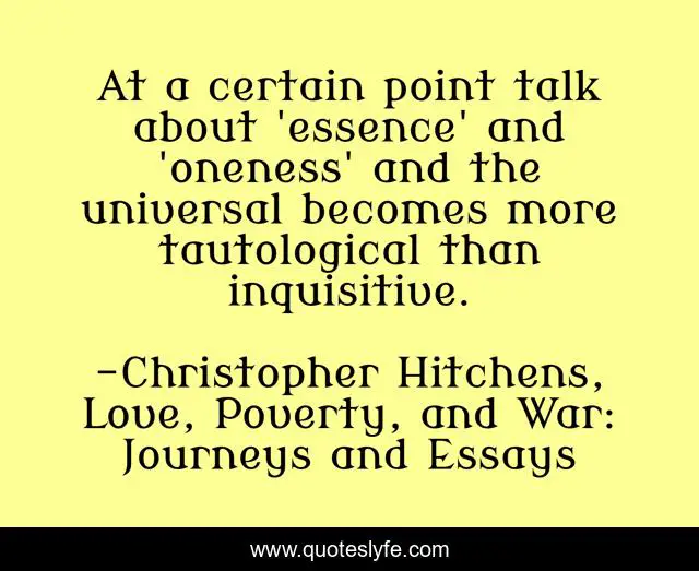 "Christopher Hitchens, Love, Poverty, and War: Journeys and Essays Quotes." Quoteslyfe.com, 2025. Fri. 05 Dec. 2025. <https://www.quoteslyfe.com/quote/At-a-certain-point-talk-about-essence-247596>.