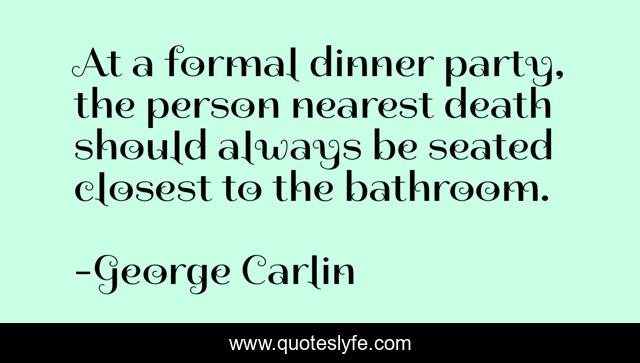 This page presents the quote "At a formal dinner party, the person nearest death should always be seated closest to the bathroom.". Author of this quote is George Carlin. This quote is about party, dinner, person,.