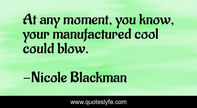 This page presents the quote "At any moment, you know, your manufactured cool could blow.". Author of this quote is Nicole Blackman. .