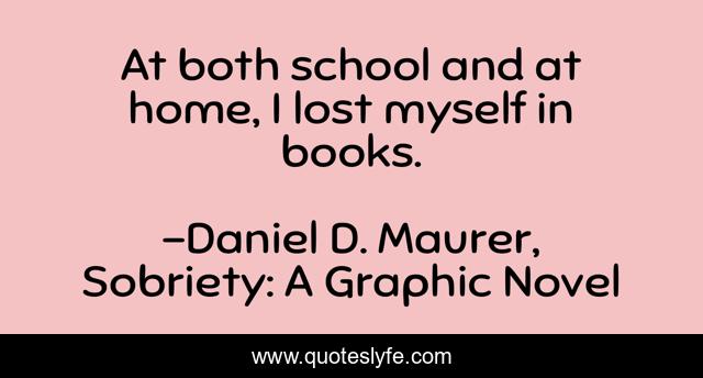This page presents the quote "At both school and at home, I lost myself in books.". Author of this quote is Daniel D. Maurer, Sobriety: A Graphic Novel. This quote is about reading-books, books, reading,.