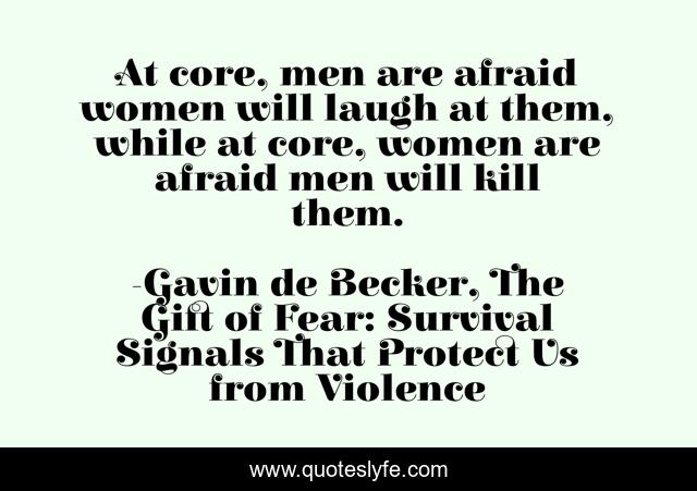 "Gavin de Becker, The Gift of Fear: Survival Signals That Protect Us from Violence Quotes." Quoteslyfe.com, 2025. Sat. 06 Dec. 2025. <https://www.quoteslyfe.com/quote/At-core-men-are-afraid-women-will-256991>.