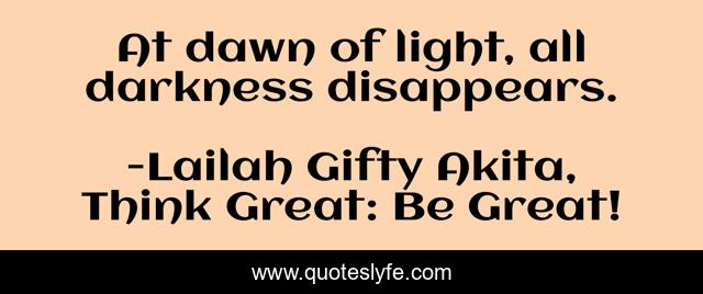 "Lailah Gifty Akita, Think Great: Be Great! Quotes." Quoteslyfe.com, 2025. Fri. 05 Dec. 2025. <https://www.quoteslyfe.com/quote/At-dawn-of-light-all-darkness-disappears-85252>.