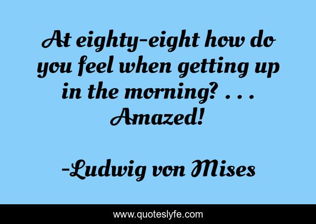 This page presents the quote "At eighty-eight how do you feel when getting up in the morning? . . . Amazed!". Author of this quote is Ludwig von Mises. This quote is about age, birthdays,.