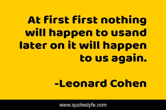 This page presents the quote "At first first nothing will happen to usand later on it will happen to us again.". Author of this quote is Leonard Cohen. This quote is about life, humanity, poetry,.