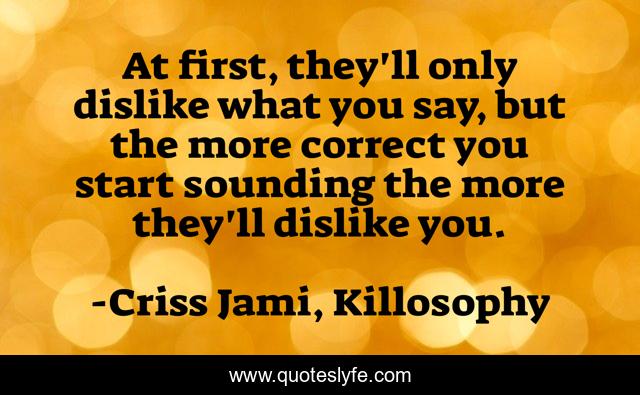 "Criss Jami, Killosophy Quotes." Quoteslyfe.com, 2025. Fri. 05 Dec. 2025. <https://www.quoteslyfe.com/quote/At-first-they-ll-only-dislike-what-9078>.