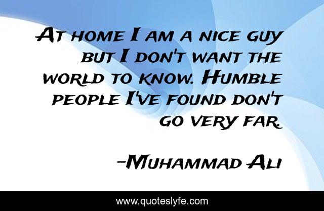 This page presents the quote "At home I am a nice guy but I don't want the world to know. Humble people I've found don't go very far.". Author of this quote is Muhammad Ali. This quote is about vices, foibles,.