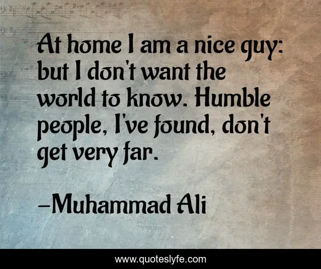 This page presents the quote "At home I am a nice guy: but I don't want the world to know. Humble people, I've found, don't get very far.". Author of this quote is Muhammad Ali. This quote is about world, humble,.