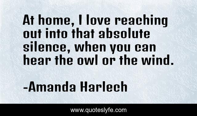 This page presents the quote "At home, I love reaching out into that absolute silence, when you can hear the owl or the wind.". Author of this quote is Amanda Harlech. This quote is about silence, love, wind, affection,.