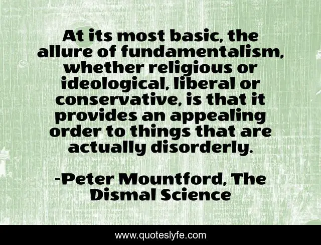 At its most basic, the allure of fundamentalism, whether religious or ideological, liberal or conservative, is that it provides an appealing order to things that are actually disorderly.
