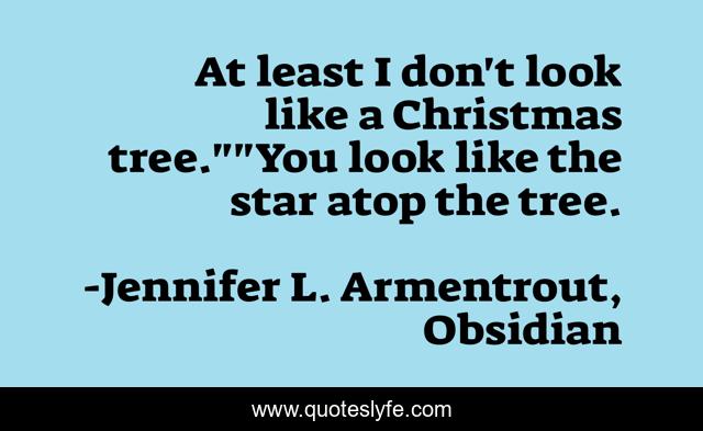 This page presents the quote "At least I don't look like a Christmas tree.""You look like the star atop the tree.". Author of this quote is Jennifer L. Armentrout, Obsidian. This quote is about katy, daemon, sweet, awww, heartwarming, compliment,.